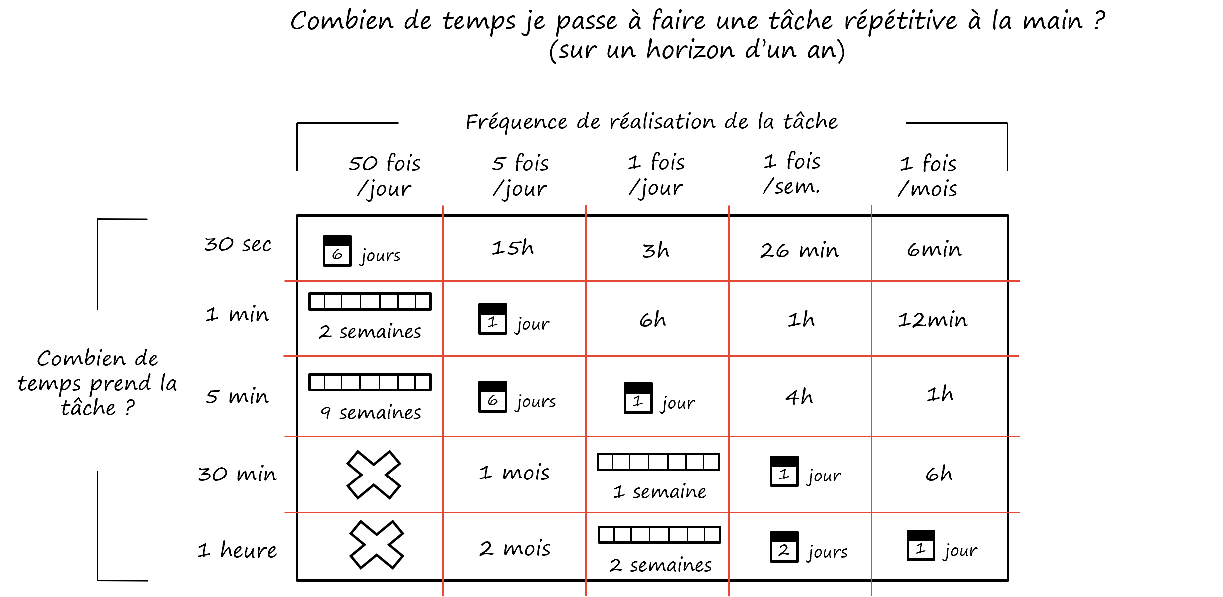 Il est évident que le premier bénéfice de l'automatisation est le gain de temps. Pour le mesurer, voici un petit site bien pratique.